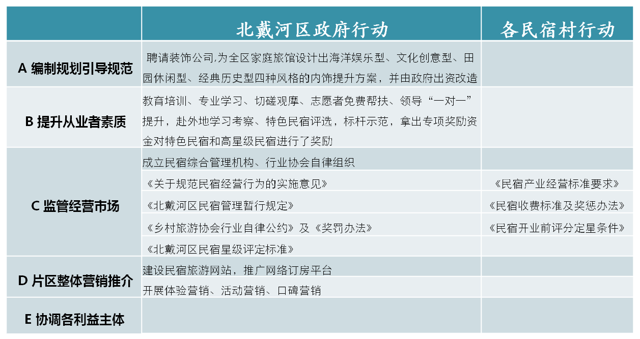 2011年,政府成立旅游产业促进中心,对民宿进行规范管理;出台了相关规划,并投入资金对民宿进行提升改造。